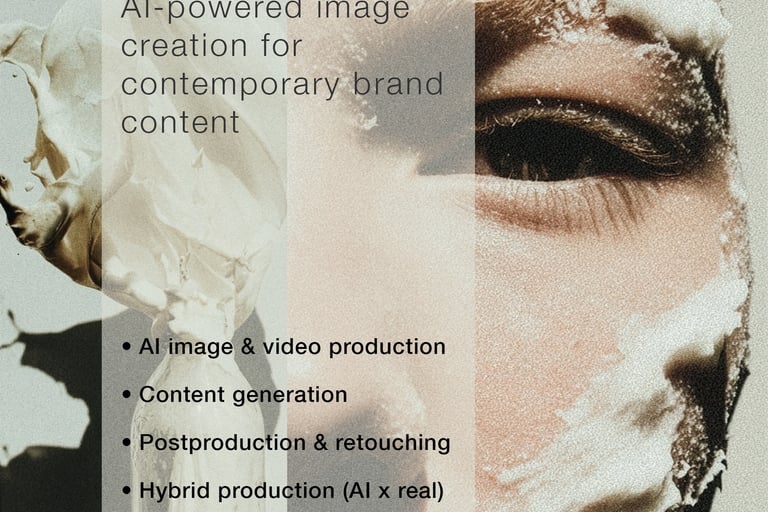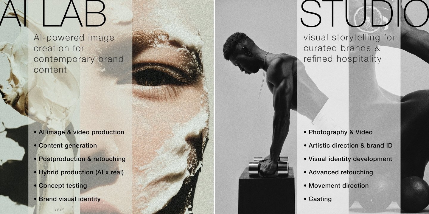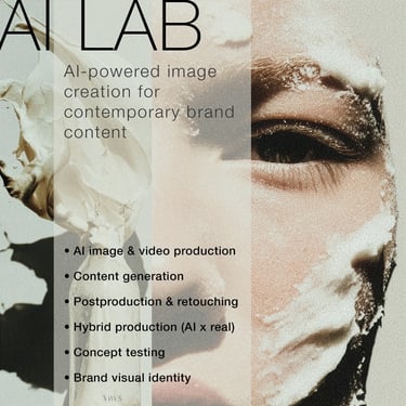 AI LAB + Studio : Creative direction, film, photography, social media content, AI image & motion, casting, movement direction, postproduction & retouching.